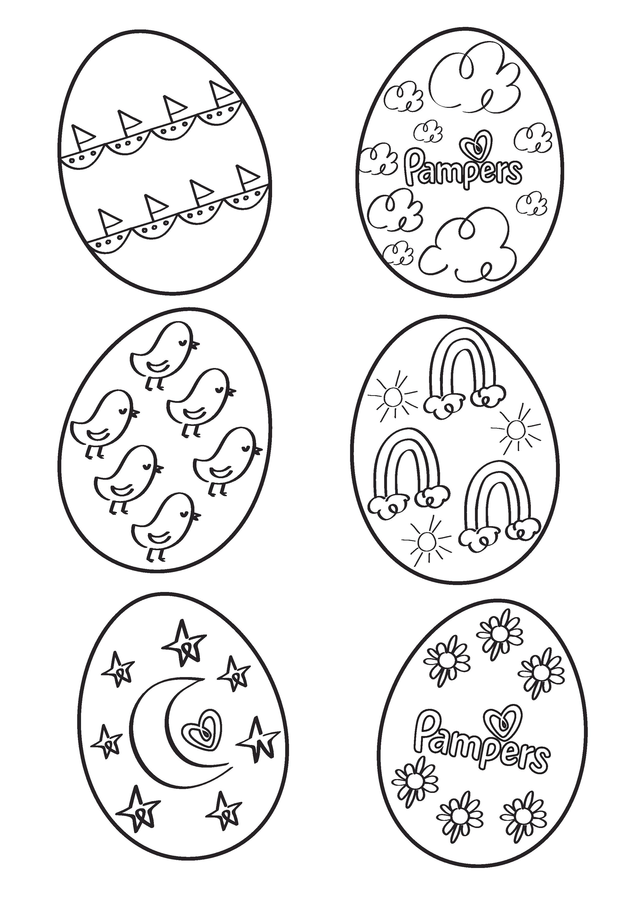 The team at Pampers have created a selection of easter egg colouring-in pages for you to print out, colour in and use as part of a fun Easter activity to do with the kiddo.