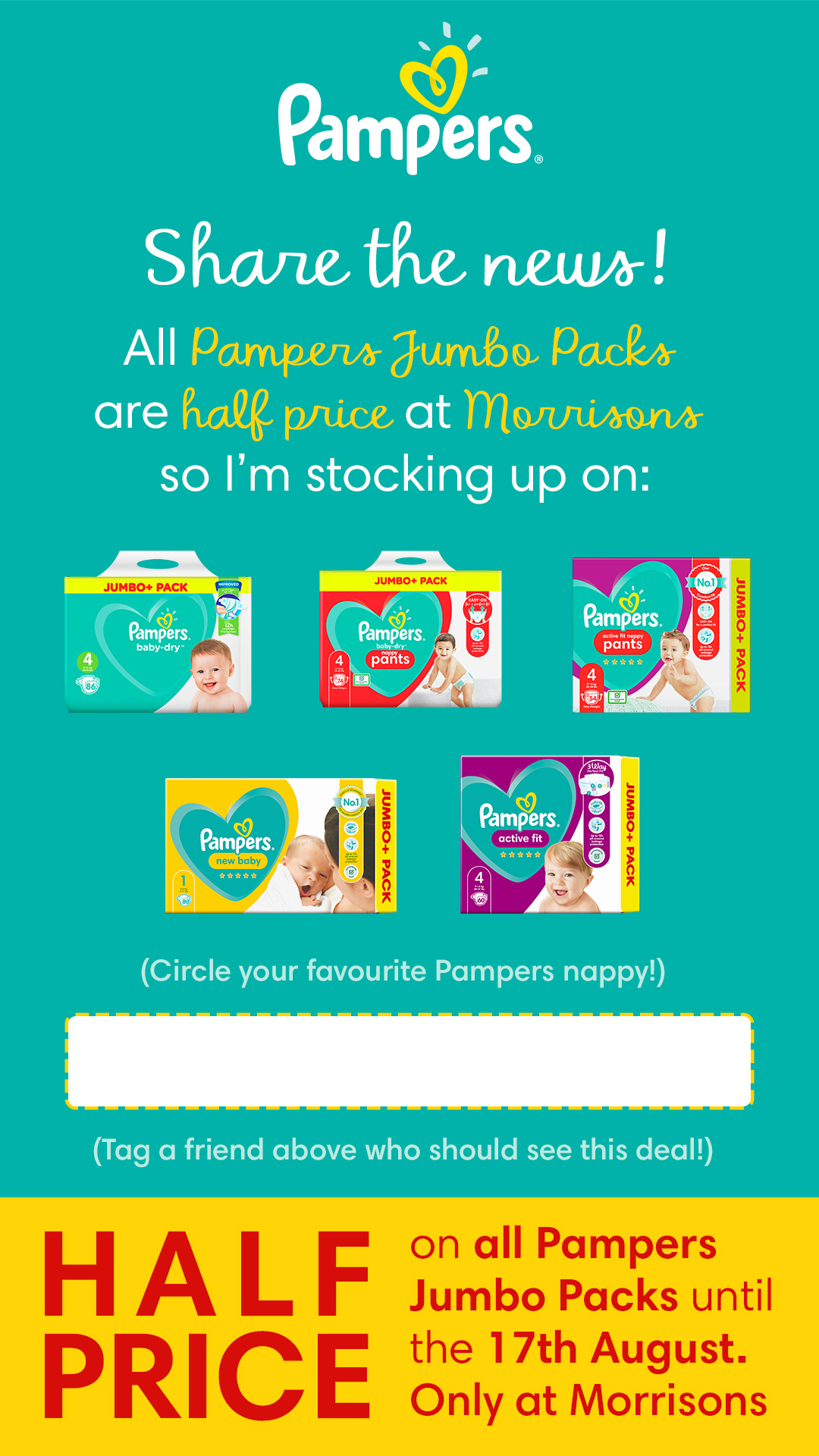 - Purchase your Pampers Jumbo Pack from Morrisons (either in store or online).