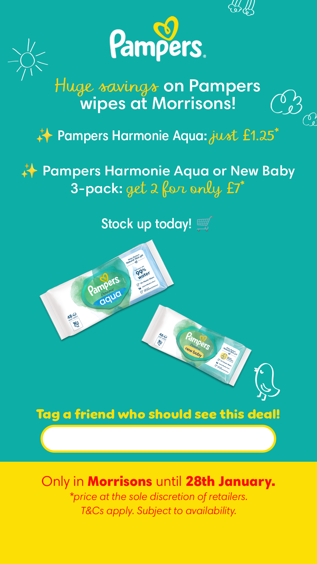 Pampers wipes are now available for less at Sainsbury’s and Morrisons 🏷️